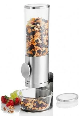 AdHoc Cerealienspender Deposito mit Ständer. Der Cerealienspender sorgt für stilvolles Aufbewahren und exaktes Dosieren von Müsli, Cornflakes, Haferflocken, Nüssen und Getreide.