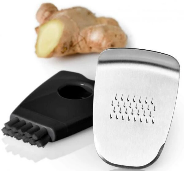 Dank messerscharfer, kleiner Zähne werden ideale Reibergebnisse erzielt. Neben Ingwer kann die Spezialreibe auch zur Herstellung von Zitronenzesten und für Wurzelgemüse wie Sellerie und Meerrettich genutzt werden. Mithilfe des mitgelieferten Schabers lässt sich zunächst die Ingwer-Schale einfach entfernen und auch die Reinigung der Spezialreibe ist dank integrierter Bürste schnell und effektiv erledigt.