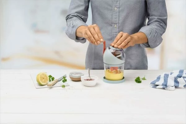 Sie haben sich bisher noch nicht so richtig an Soßen herangetraut, dann wird es Zeit! Mit dem Sauce Maker von Betty Bossi gelingt Ihnen jede Soße im Handumdrehen. Mit dem kleinen Rezeptheft haben Sie auch immer die passende Anleitung zur Hand und Sie werden sehen, mit der Zeit werden Sie zum Soßen-Spezialisten. Hollandiase und Mayonnaise: Alles kein Problem mit dem Quirl von Betty Bossi. Und wenn etwas übrig bleibt, nutzen Sie den Boden als Deckel und verstauen den Rest im Kühlschrank.