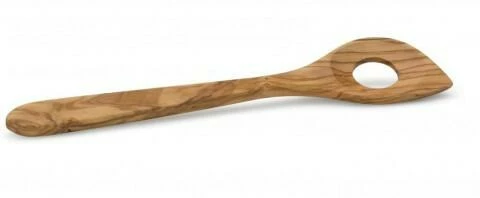 Kochlöffel mit Ecke und Loch aus Olivenholz. Extrem hartes Holz mit hoher Materialstärke.