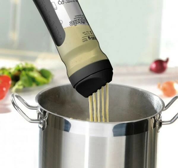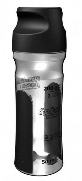 Die Teigzubereitung ist durch die Rezepte direkt auf dem Shaker denkbar einfach. Denn die aufschichtende Skalierung der Zutaten im transparenten Kunststoffbehälter hilft Schritt für Schritt zum perfekten Spätzle- oder Pfannkuchenteig. Anschließend sorgt der Mix-Einsatz „Twister“ für eine optimale Teigmischung. Und für ein sicheres Handling beim Mixen garantieren die rutschfesten Santropen Einlagen. Zu einer sauberen Sache macht den Spätzle-Mix auch der Verschlussdeckel mit Edelstahleinlage. So leicht wie die Zubereitung des Teiges ist dann auch die Weiterverarbeitung zu Spätzle oder Pfannkuchen.