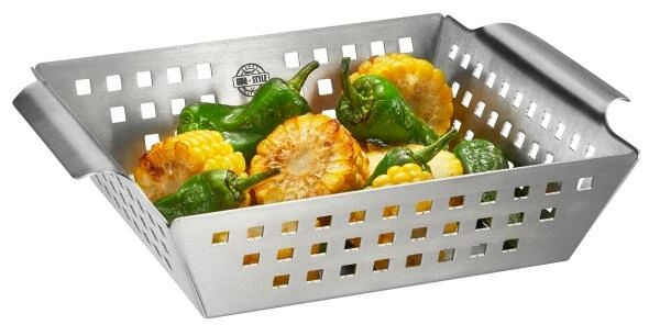 Der BBQ Gemüsekorb ist ideal zum Grillen von kleingeschnittenem Gemüse, Pilzen, Kartoffeln oder Scampis. Dank der quadratischen Öffnungen im Boden und den Seitenwänden kann die Hitze optimal zirkulieren und das Grillgut wird knackig geröstet. Hergestellt aus hochwertigem Edelstahl und spülmaschinengeeignet.