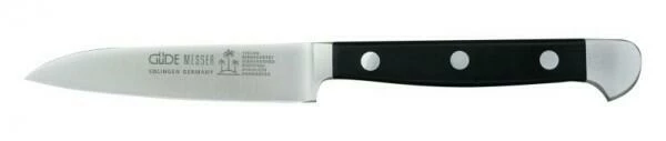 Güde Messer aus der Serie Alpha. Der feinpolierte Griff besteht aus robustem und pflegeleichtem Hostaform und ist spülmaschinengeeignet. Die Klinge ist rostfrei, eisgehärtet und handgeschärft. Die Güde Messer der Alpha-Serie erfüllen die Anforderungen der Richtlinien an Messer für den Einsatz in der Gastronomie und bieten innerhalb der Güde-Serien die größte Modellvielfalt.