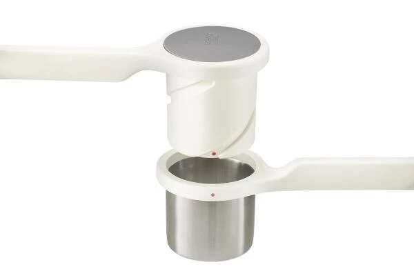 Die ergonomisch geformten Pressen der Joseph Joseph Helix-Serie sind dank der horizontalen Stellung bequem zu bedienen. Der einzigartige Drehmechanismus vervielfacht die beim Pressen angewandte Kraft – sodass das Ausdrücken noch einfacher wird. Die Pressen bestehen aus zwei Komponenten aus rostfreiem Edelstahl und Nylon. Diese Pressteile können nach der Benutzung in der Spülmaschine gereinigt werden.