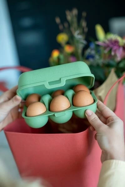 Die Eierbox mit Clipverschluss ist robust, stapelbar und 100% CO2-neutral. Die Boxen sind leicht zu reinigen und sogar spülmaschinengeeignet.