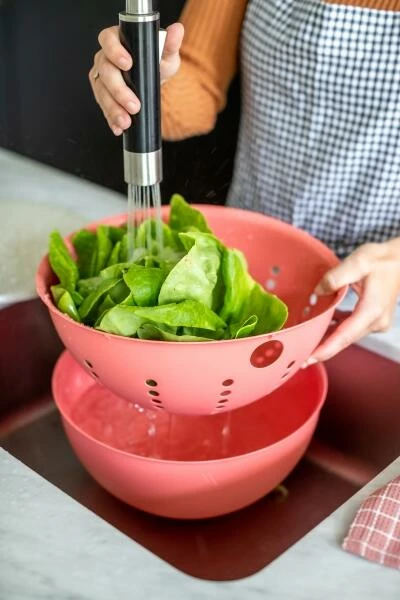koziol Seiher PALSBY in coral. Der Seiher aus recyceltem Kunststoff ist made in Germany. In 2 Größen verfügbar.
