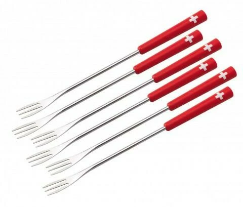 KKuhn Rikon Fonduegabeln Schweizer Kreuz mit Kunstoffgriff, 6er Set. Das Set besteht aus sechs Fonduegabeln mit Griff aus Kunststoff.