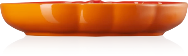 Le Creuset Kürbisteller mittel in ofenrot. Teller in Kürbisform eignet sich sowohl zum Servieren eines mehrgängigen Menüs als auch zum angemessenen Präsentieren von Kleinigkeiten.