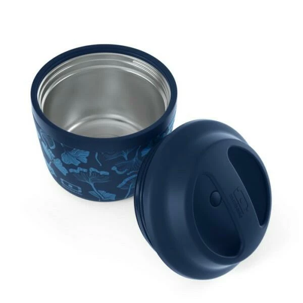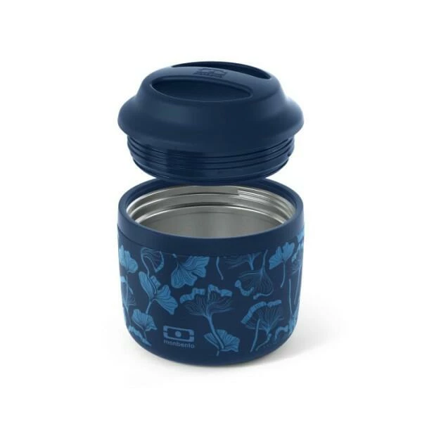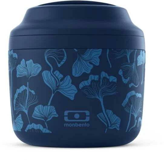 Monbento MB Element Isolier-Speisegefäß, graphic blau Gingko. Mit dem Thermogefäß aus Edelstahl bleibt Ihre Mahlzeit bis zu 10 Stunden warm bzw. kalt.