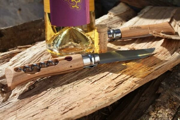 Opinel-Messer der Größe 10 bietet ein tolles Extra. In den Griff aus Buchenholz ist ein praktischer Korkenzieher integriert.