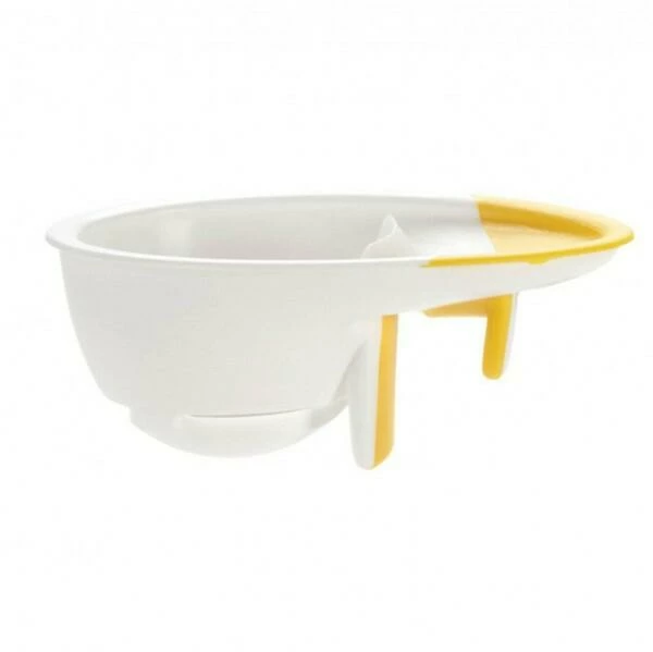 - angehobene Kante vereinfacht Aufschlagen von Eiern und verhindert, dass Eiweiß oder Eierschalensplitter in Schüssel oder auf die Arbeitsplatte fallen