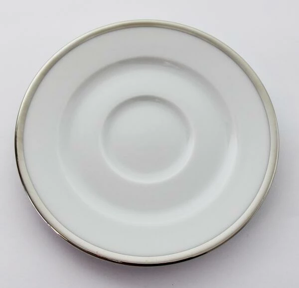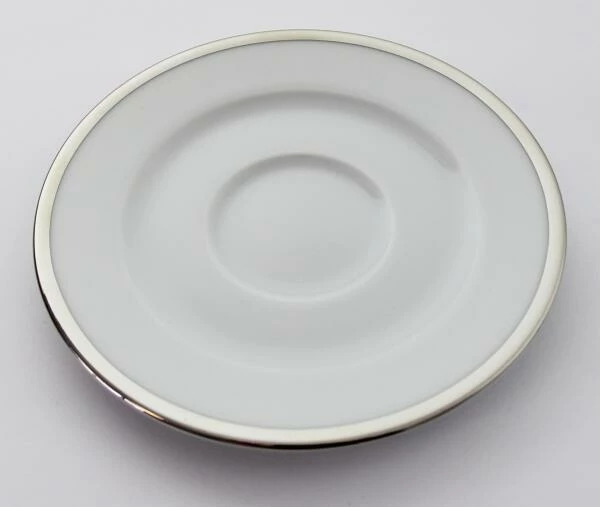 Pillivuyt Kaffeetasse Sancerre mit Platinrand. Pillivuyt Sonderanfertigung, bei der Kaffeetasse und Untertasse mit einem Platinrand verziert sind.