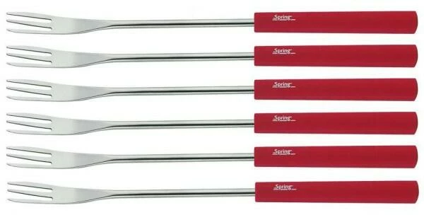Spring besteht aus einem Rechaud, Caquelon mit 2 Liter Fassungsvermögen und sechs Fonduegabeln. Der Caquelon im farbenfrohen Design macht zusätzlich Appetit auf das klassische Schweizer Käsefondue. Innen ist der Behälter antihaftbeschichtet und außen emailliert. Da der Caquelon induktionsgeeignet ist kann er auch beim täglichen Kochen als Stieltopf genutzt werden.