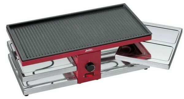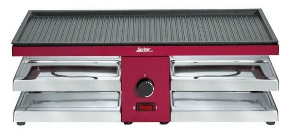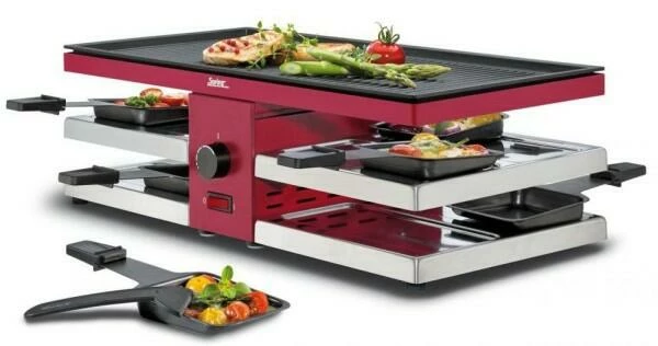 Spring Raclette8 Fun mit Alu-Grillplatte in rot. Das große Spring Raclette für unvergessliche Raclette-Abende für bis zu 8 Personen.