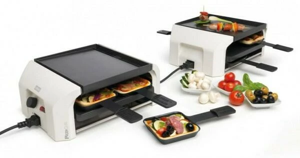 Stöckli PizzaGrill Four4, Set in weiß. Das multifunktionale Basisgerät und Endgerät für 8 Personen mit den Funktionen Pizza, Grill und Raclette.