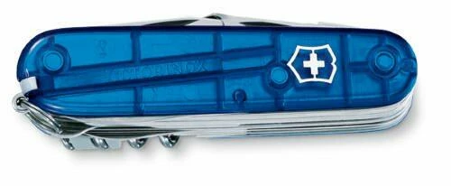 Victorinox Offiziersmesser Swisschamp grosses Modell in blau transparent, 91 mm mit 33 Funktionen. Mit dem SwissChamp sind Sie in jeder Situation ganz vorne mit dabei. Das Spitzenmodell unter den Offiziersmessern vereint 33 hochwertige Werkzeuge mit einem preisgekrönten Design.