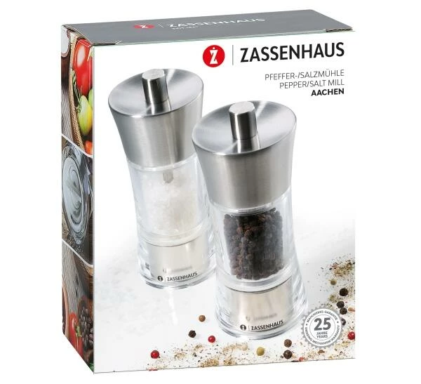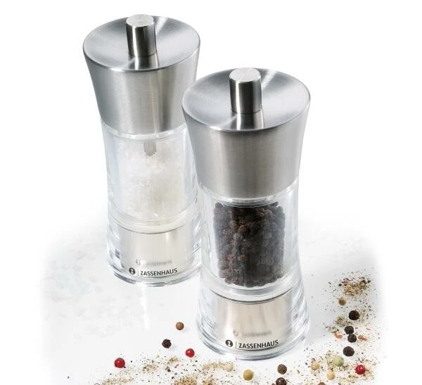 Zassenhaus Mühlen-Set Aachen Edelstahl/Acryl. Zum Set gehören die Salz- und die